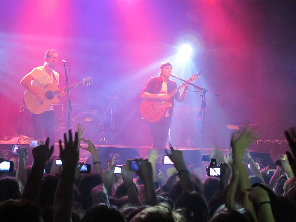 Heffron Drive lo dio todo en su primer show en Argentina (07/11/15) El dúo indie pop del integrante de Big Time Rush se presentó en Niceto Club el viernes 30 de octubre como parte del tour promocional de su nuevo álbum “Happy Mistakes: Unplugged”. Una noche íntima con la banda y sus seguidores juveniles (y adultos). El show inició a las 21:30 para un público que estuvo desde temprano haciendo fila a las afueras del venue ya sea para la experiencia VIP como para la admisión general. Kendall Schmidt (cantante principal) y Dustin Belt (guitarrista) aparecieron en el escenario para tocar la primera canción de su álbum homónimo: “Happy Mistakes”. Entre frases en español e inglés, los chicos de la calle de Burbank saludaron entusiastas a los fanáticos que no paraban de gritar sus nombres y la letra del tema. Le siguió su primer single en una versión totalmente acústica, “Parallel” donde el “maybe tonight the stars align” quedó resonando por los alrededores de Niceto y tanto Schmidt como Belt tocaron la guitarra de una manera enérgica y poderosa. Continuaron con “Division Of The Heart” y “Had To Be Panama”. Antes de “Nicotine”, una canción donde hablan de un amor tóxico como la nicotina, Dustin preguntó quiénes de los presentes tenían su segundo álbum de estudio. Ya sea en formato físico, digital o sólo para seguir la corriente, varios fans levantaron la mano a medida que él los iba señalando sorprendido por la cantidad de personas. La noche continuó con “Art Of Moving On”, una de las canciones más aclamadas y una de las primeras que se habían dado a conocer cuando anunciaron a fines del 2013 que se encontraban trabajando en nuevo material. Ni bien terminaron, Kendall se ató a la cintura una bandera argentina que una fan del público le había tirado al escenario y la cual mantuvo a lo largo de todo el show. Emocionados por la situación, todos empezaron a gritar “Argentina, Argentina” cual cántico de cancha y él también se sumó al canto. Seguía “Passing Time”, canción que en el unplugged tiene la participación especial de Logan Henderson, compañero de la boyband Big Time Rush. Fue por esto que hicieron una introducción al tema diciendo que les gustaría tener a Henderson con ellos para esa canción en particular pero que el público iba a tener que cantar sus partes e iban a hacerle saber que lo extrañaban en el país (y dieron el indicio de que podrían volver con él en el próximo tour). Terminó el tema (que tuvo un pogo de arriba hacia abajo y no a los costados como ellos indicaron por lo apretado que estaba el sector campo) y la banda se retiró dejando sólo al cantante con los fans. La idea era tocar “Could You Be Home” solo y con el mayor silencio posible. Con un “silencio para esta canción, por favor… para mí”, Schmidt pidió que no gritaran a lo largo de la canción así sólo se podía escuchar su voz y la guitarra, tal como en la versión de estudio que no tuvo ningún arreglo electrónico, sino que se trata de una grabación en crudo. Le tomó alrededor de unos 4 minutos hacer que todos comprendieran su pedido y no aprovecharan el momento para decir que lo amaban y gritarle todo lo que les salía de adentro. Una vez que hubo una paz absoluta, inició con las primeras estrofas, se volvió a llevar gritos en los falsettos y dejó cantar a todos en el último estribillo. Los demás integrantes volvieron a sus puestos y Belt trajo otra bandera argentina en sus hombros (más un vaso de cerveza) y la dejó sobre los escalones donde permaneció intacta hasta que terminó el show. El setlist continuó con una más movida: “Better Get To Movin’”, una de sus primeras canciones del EP “The Forthcoming”, publicada en Myspace a comienzos del 2009. Para los fans que los siguen de hace más tiempo, es un himno a la celebración incluso tratándose de una versión acústica donde faltan los elementos electrónicos de la original. De todas formas, hicieron saltar a todo el público en la pista de baile a la cuenta de cuatro, tal como dice la letra. Bajando con el sentimiento efusivo y descontrolado, pasaron a una canción “dedicada para ustedes”: la balada “That’s What Makes You Mine” donde antes presentaron a toda la banda y el crew del tour: Scott Heiner (baterista), Trevor (tecladista) y el bajista Andy Fischer-Price quien se llevó toda la atención del público femenino que quedó encantado con él y más siendo la primera vez que visitaba el país. También hicieron una mención especial a quien organizó la parte latinoamericana del Happy Mistakes Unplugged Tour: Frankie Orange, tatuador y amigo del grupo. Luego de tocar una de las últimas canciones de la noche, se despidieron para dar inicio al encore. Regresaron afinando sus guitarras y preparándose para “Time Wasting”, otro lento de su primer EP que trajo nostalgia a quienes recuerdan aquellos días donde aún no salía su álbum debut. Cerca de las 22:40 dijeron que venía su última canción y la disconformidad no se hizo esperar. Por esto aclararon que piensan volver pronto para poder tocar todos los temas de nuevo (y las de su próximo álbum). “Esta canción es muy especial porque todo ha cambiado desde que los conocimos… Los amo, Argentina” y así dieron inicio a “Everything Has Changed” con un final emotivo y un público que terminó satisfecho y se retiró del venue sin problemas. PUBLICADO EN ISEC POST